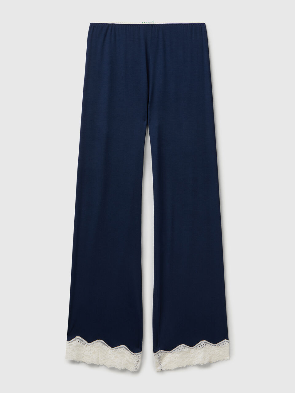 Long pyjama trousers in stretch viscose with a loose fit. High edge with clashing lace at the bottom. This product contains at least 30% LENZING™ ECOVERO™ viscose fibers obtained from controlled or certified wood sources. LENZING™ and ECOVERO™ are registered trademarks of Lenzing AG.