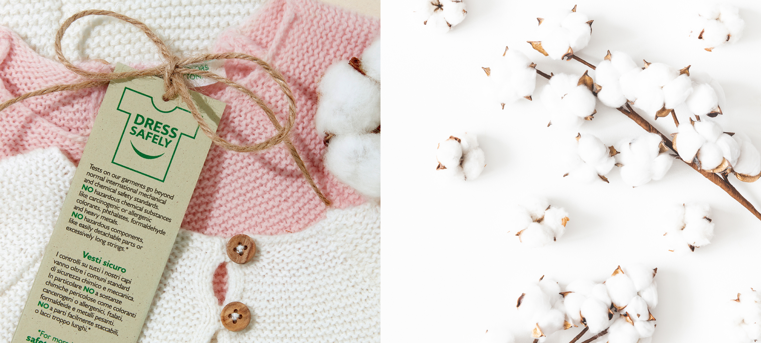 Το project της Benetton Group είναι αφιερωμένο στην ποιότητα και την ασφάλεια των ενδυμάτων. Το μενταγιόν Ντύσου με Ασφάλεια πιστοποιεί τη συμμόρφωση με τις αυστηρότερες παραμέτρους ασφάλειας υφασμάτων και διασφαλίζει ότι οι λεπτομέρειες και τα στοιχεία των προϊόντων μας δεν είναι δυνητικά επικίνδυνα.